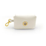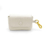 Portaciotole in pelle di vitello lavorata ad intreccio con ciotola in acciaio finitura argento.